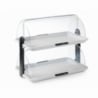 This Rectangular Showcase with Sliding Covers has 2 levels consisting of two plastic trays with dimensions of 465 by 310 mm. Ideal for storing cheeses or any other food, its transparent rolltop covers protect them when displayed on a buffet for example.