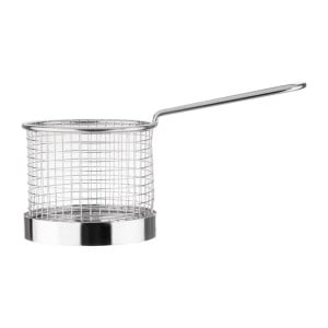 Stainless steel presentation baskets with handle, perfect for serving fried foods or side dishes in an original style. Dishwasher safe.