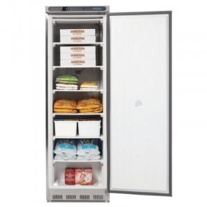 Furthermore, it is equipped with a LED digital control panel at the top. For optimal safety, its reversible door is lockable. The defrosting of this cabinet is done manually. Finally, its insulation at the back and on the sides measures 60 mm compared to 90 mm on top. Thanks to it, you will save energy. This cabinet is specially designed for low-intensity use.