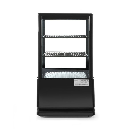 Built in stainless steel with a layer of paint, this White Refrigerated Display Case with 4 Glass Sides - 58 liters is equipped with double glazing. Cooling by forced ventilation with automatic defrost, compressor placed under the chamber.