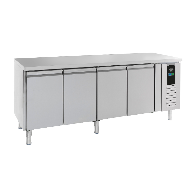 Discover the performance and efficiency advantages of our positive refrigerated table 2 doors GN 1/1 with backsplash. Designed to meet the needs of catering professionals, this preparation table combines robustness and performance in an elegant and functional design.