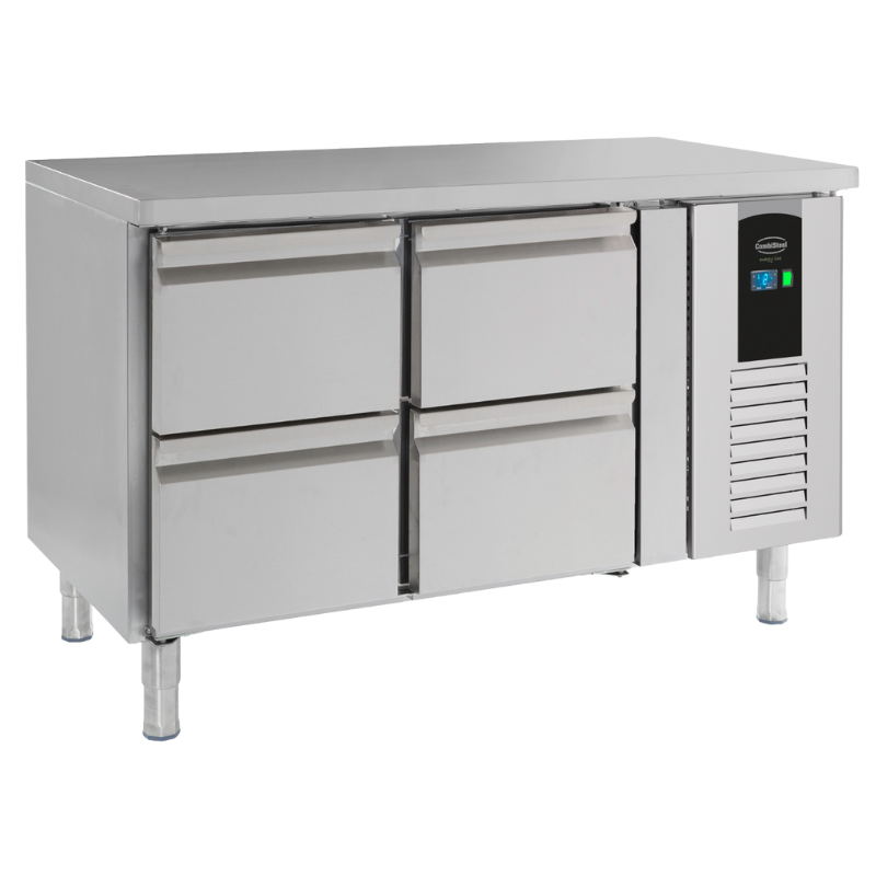 The refrigerated table is equipped with six spacious drawers accepting standard GN 1/1 trays, allowing impeccable organization and quick accessibility. Each drawer ensures optimal food preservation at temperatures ranging from 0 to 10°C, thanks to a ventilated cooling system. This type of cooling guarantees a homogeneous distribution of cold air, which is crucial for maintaining the freshness and quality of stored products.