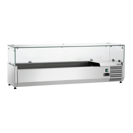 Thanks to this Countertop Saladette that can hold 6 GN 1/4 size containers, keep your products fresh and comply with hygiene standards! This is what you can do with this display case made of stainless steel and glass showcase for GN 1/4 containers (delivered without containers).