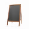 Very elegant, the Chalkboard is a deep black color and rests on a Wooden support.