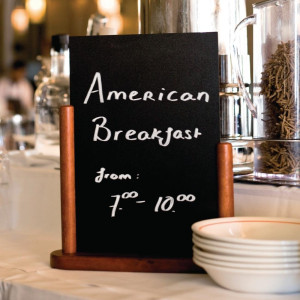 These elegant, simple yet effective boards can be placed on the table or bar and are ideal for displaying specials. Solid beech supports with a mahogany finish. The slate can be easily removed from the support to write on both sides.
