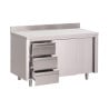 Stainless Steel Table Cabinet With 3 Drawers on the Left and Sliding Doors - L 1800 x W 700mm