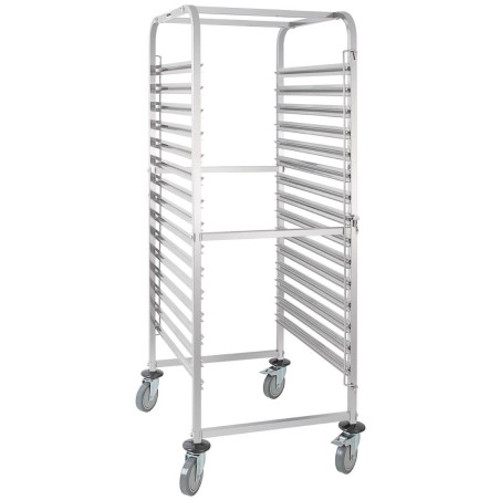 Ideal for professional kitchens, this GN Slide Trolley has a length of 770 mm, a depth of 585 mm, and a height of 1720 mm. It features 15 shelves designed to securely hold gastronorm GN 1/1 containers. The shelf is easy to clean with hot soapy water, and the spacing between shelves is 80 mm, but it can accommodate any depth of gastronorm container. It is suitable for GN 1/1, 1/2, 1/3, and 2/3 containers (maximum depth of 65 mm).