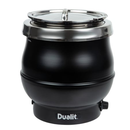 Ideal for catering professionals, this Traditional Black Soup Pot with a capacity of 11 liters is perfect for keeping soup warm. The thermal cut-off prevents damage to the pot if it operates empty, and the satin black finish is sure to catch the eye of customers. It is also ideal for serving sauces, hot chocolate, and mulled wine. It measures 380 mm in height and 340 mm in diameter.