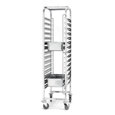 See Roostevabast terasest redel brändilt Hendi GN 1/1 omab 15 taset, mille vahe on 80 mm. Sellel on 4 ratast, millest 2 on piduritega, et igapäevast kasutamist lihtsustada ja muuta see väga käepäraseks. Sellel on plaatide lukustamissüsteem mõlemal küljel.