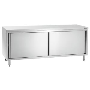 Tänu libisevatele ustega on sellel madalal hoiukapil võimalik kiire avamine ja sulgemine, pakkudes võimalust hoida oma taldrikuid, pannid või toiduaineid tolmu ja mustuse eest kaitstult. Kogu roostevabast terasest, see professionaalne hoiukapp on kergesti ja kiiresti puhastatav. Sellel on 40 x 40 mm ruudukujulised jalad koos reguleeritava 50 mm jalaga.