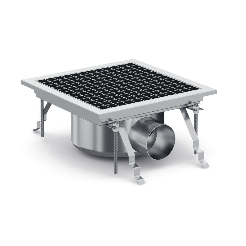 Le siphon de sol amovible de type avaloir permet un nettoyage complet du caniveau.
