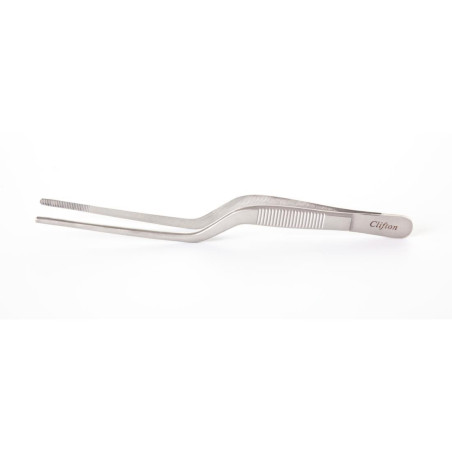 Cette Pince de chef est un ustensile essentiel à toute cuisine professionnelle qui vous aidera pour la cuisson, le dressage et la présentation des aliments. La forme incurvée spécialement conçue permet d'être au plus près de l'assiette et donc une plus grande exactitude et précision lors du dressage.