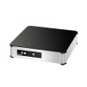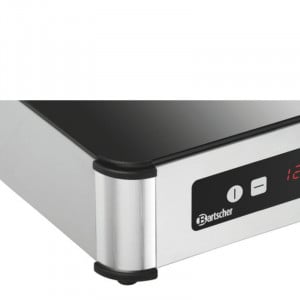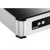 Elle est munie d'une protection contre la surchauffe, d'un affichage numérique, d'un bouton ON/OFF et d'un système de reconnaissance des récipients. Sa surface de cuisson est en verre et le diamètre maximal de la casserole est de 200 à 380 mm. Commande électronique et tactile.