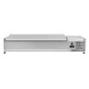 La saladette réfrigérée à poser avec couvercle en inox s’avère parfaite pour les professionnels en restauration recherchant une solution à la fois compacte et efficace pour la conservation de leurs préparations froides. Avec des dimensions soigneusement étudiées (1400 mm de longueur, 395 mm de profondeur, et 435 mm de hauteur), ce modèle s’intègre parfaitement dans les cuisines où l'espace est précieux, tout en offrant une capacité adéquate de 6 bacs GN 1/3.