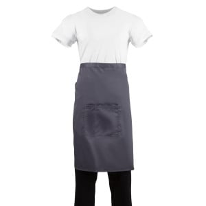 Le tablier possède une grande poche avant pouvant contenir de petits essentiels. Sa matière en polycoton est particulièrement utile en cuisine, où les vêtements doivent être portés pendant de longues périodes de travail soumises à la chaleur et au stress. Par ailleurs, il est proposé en coloris gris anthracite (couleur idéale pour minimiser la visibilité d'éventuelles tâches) et mesure 1000 x 700 mm.